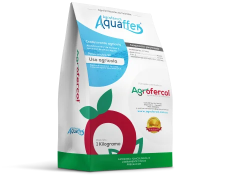 AGROFERCOL AQUAFFER® SP mejora las condiciones del agua, regulando el valor del pH y la dureza a rangos óptimos de aplicación; según las condiciones mínimas requeridas para la mayoría de los fungicidas, insecticidas, acaricidas, herbicidas y fertilizantes foliares. El orden de mezcla del producto debe ser el siguiente: Agua + AGROFERCOL AQUAFFER® SP + coadyuvantes + polvos solubles + polvos mojables + concentrados emulsionables + suspensiones concentradas.